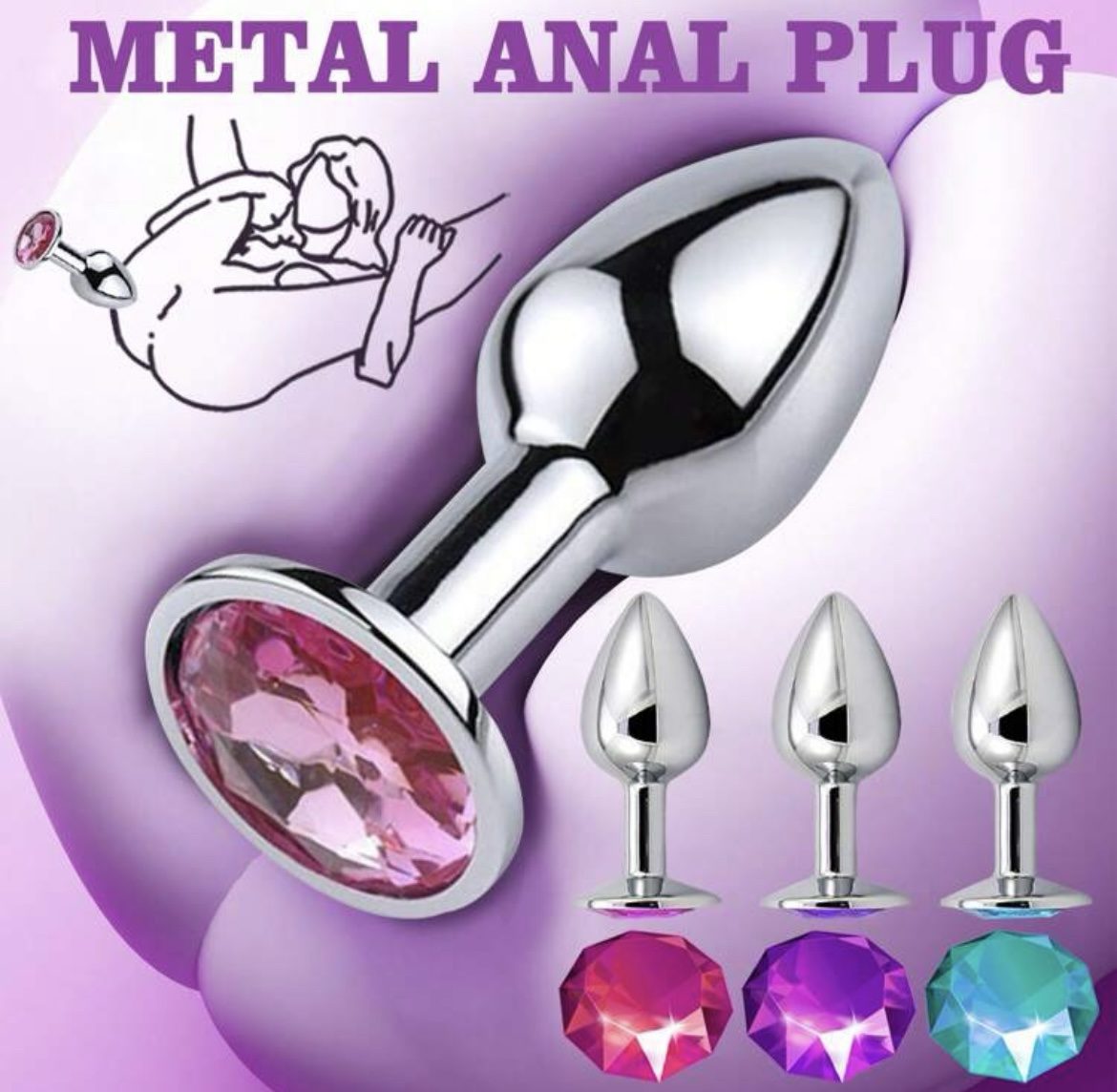 Tapón anal de metal con joya imitación de diamante. Para entrenamiento anal , para dilatar.